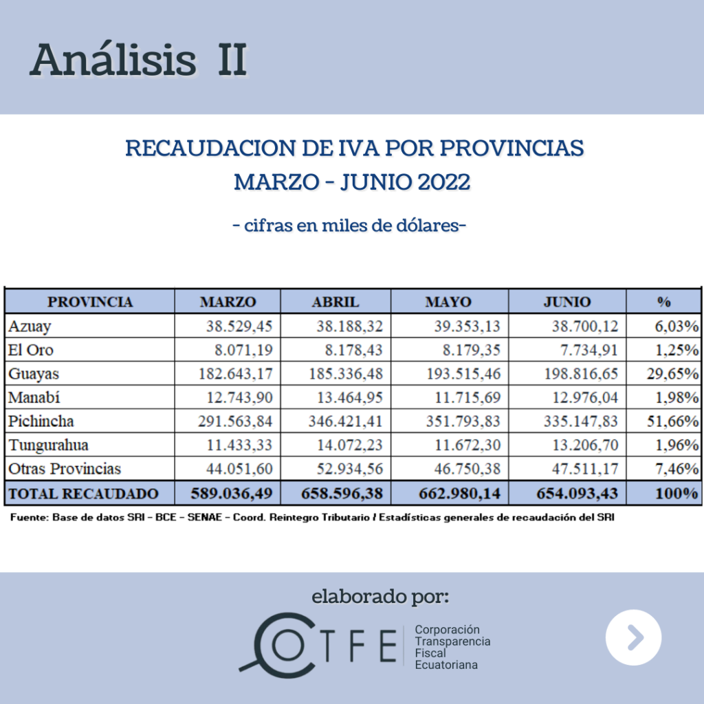 Análisis de la recaudación del IVA de marzo a junio del 2022